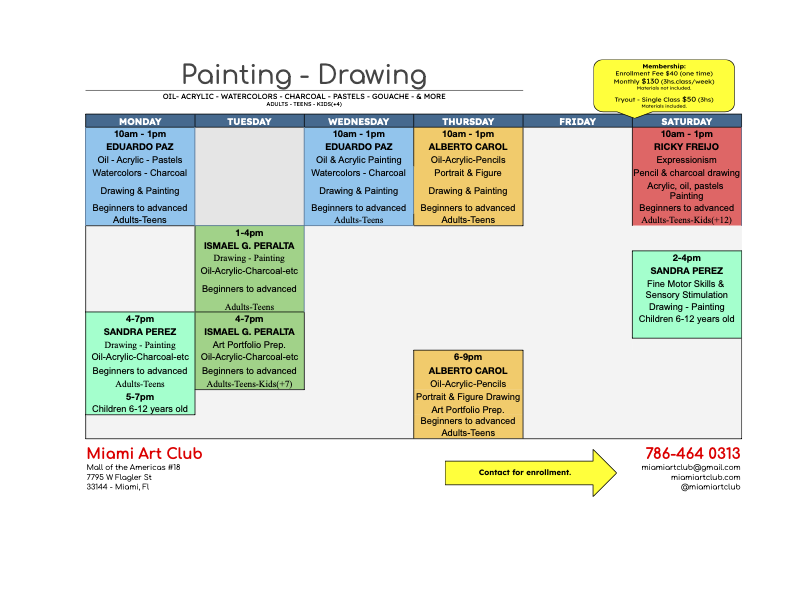 Weekly Class Schedule Weekly Schedule is whole year round. Reservation is required, please contact first no walk ins allowed. Need help choosing the most appropriate session? CONTACT US